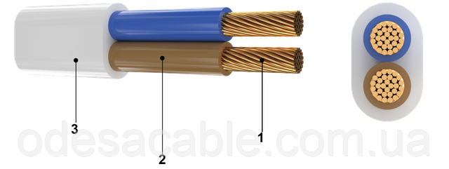 Шнур с паралельными, медными ТПЖ, с изоляцией из ПВХ пластиката, с наружной оболочкой из ПВХ пластиката